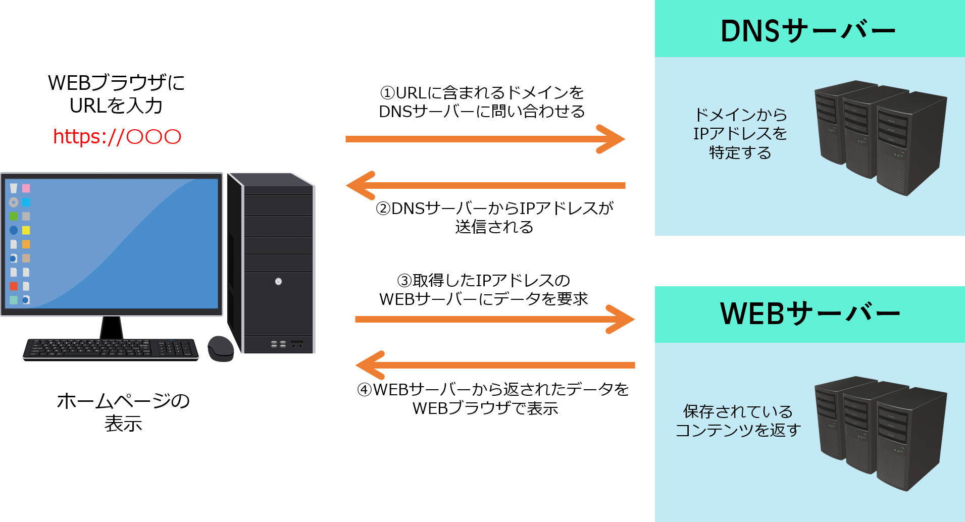Webブラウザが送られてきたHTML等を変換してユーザーのPC画面に表示します